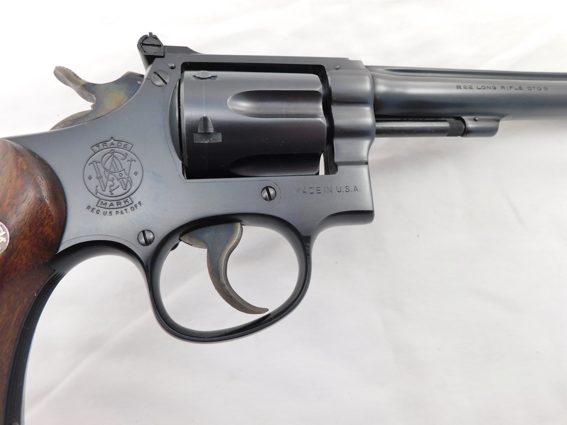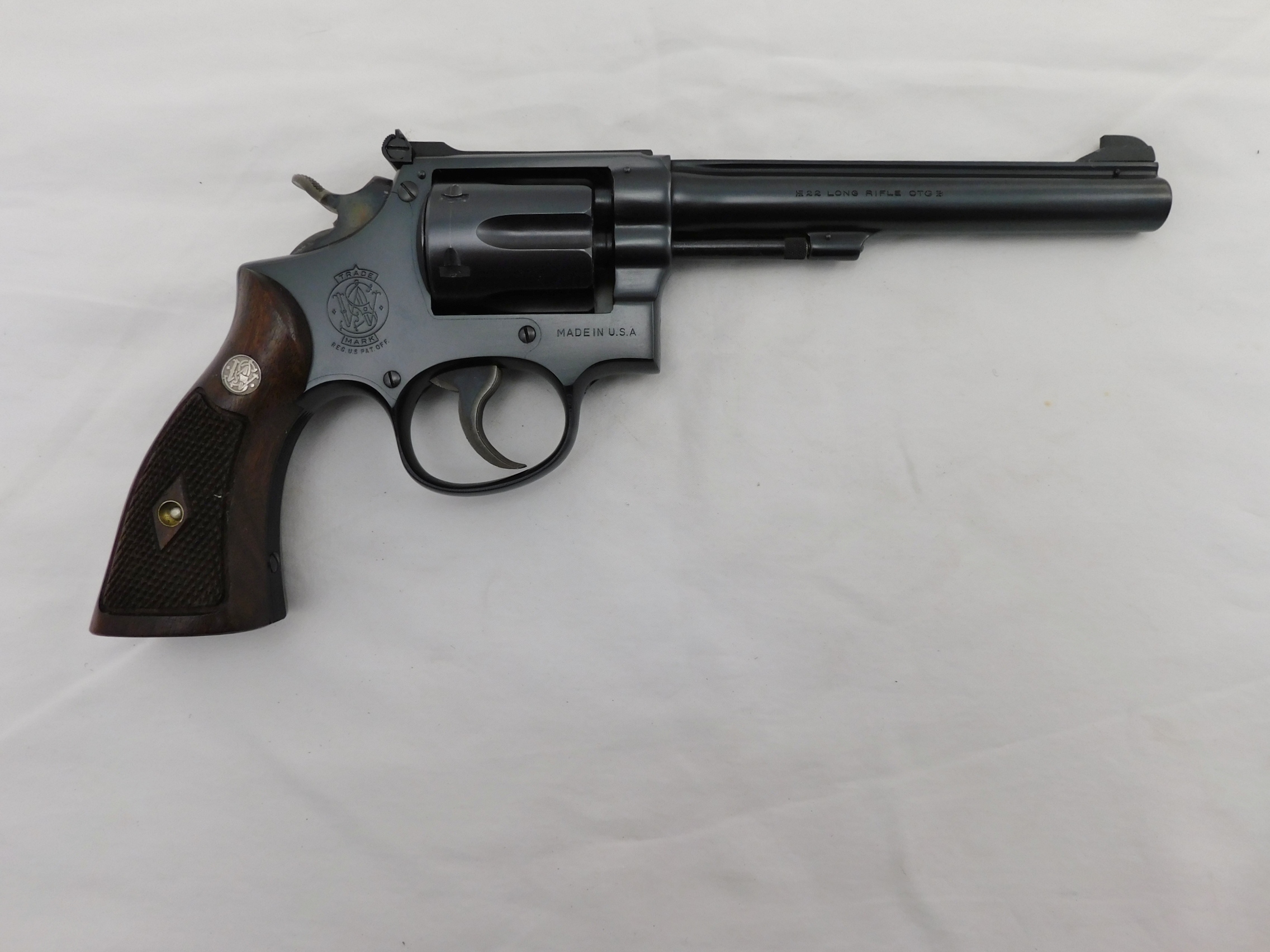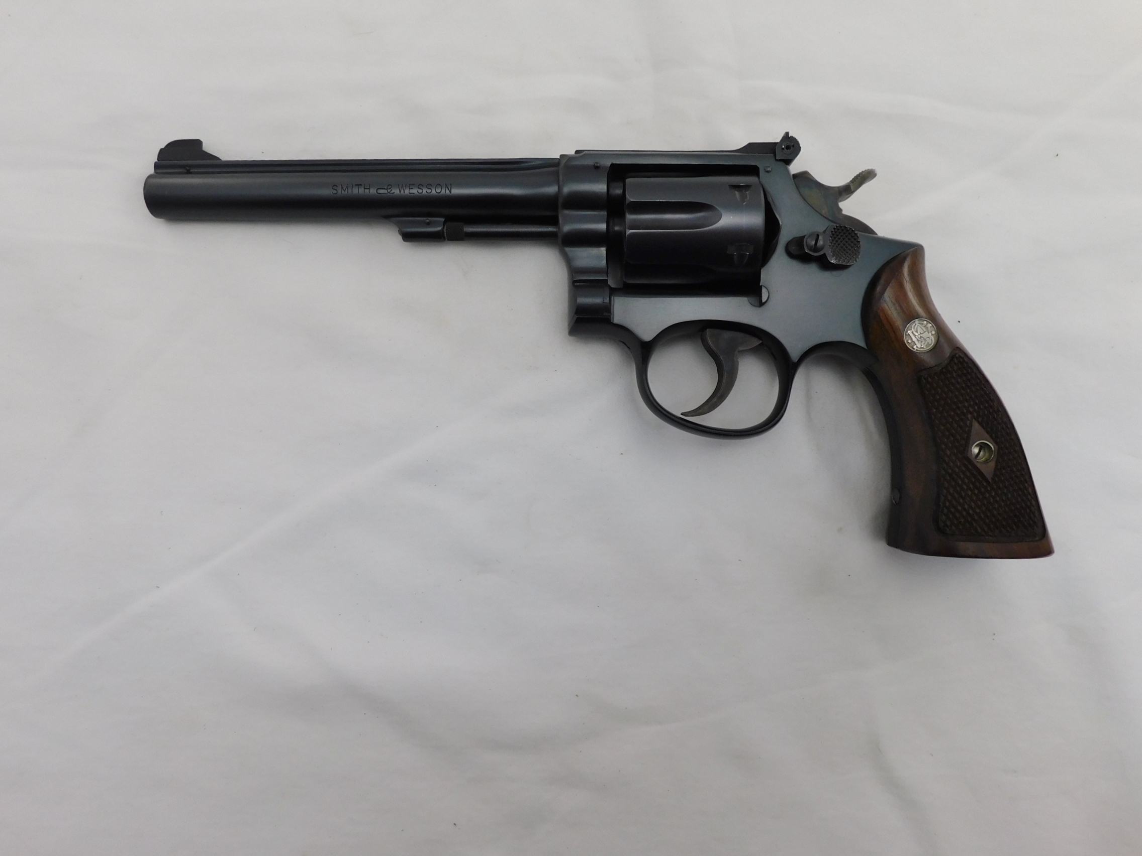 This is a Smith Wesson K22 22 with a 6 inch barrel. This gun is 99% with no box. All matching numbers. Serial # is K29xxx. Buyer pays 35.00 shipping. Thank you. 60-3-12