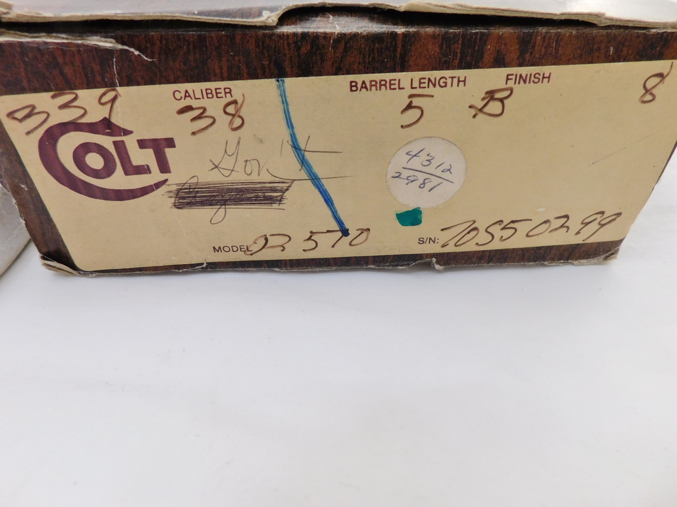 This is a Colt 1911 38 super. This gun is 100% new in the box. Serial # is 70S50xxx. Buyer pays 55.00 shipping. Thank you. 59-5-14