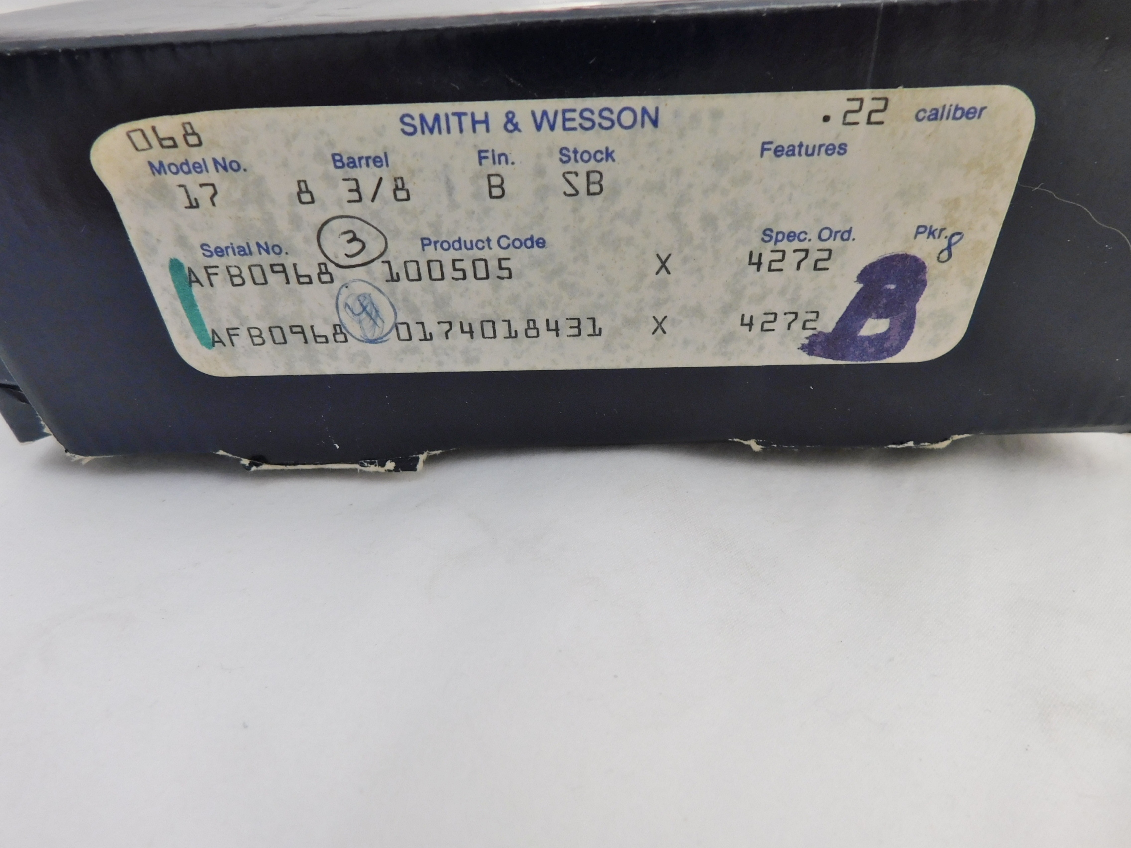 This is a Smith Wesson 17-4 22 with a 8 3/8 inch barrel. This gun is 99%+ in the box. Serial # is AFB09xx. Buyer pays 35.00 shipping. Thank you. 60-2-3