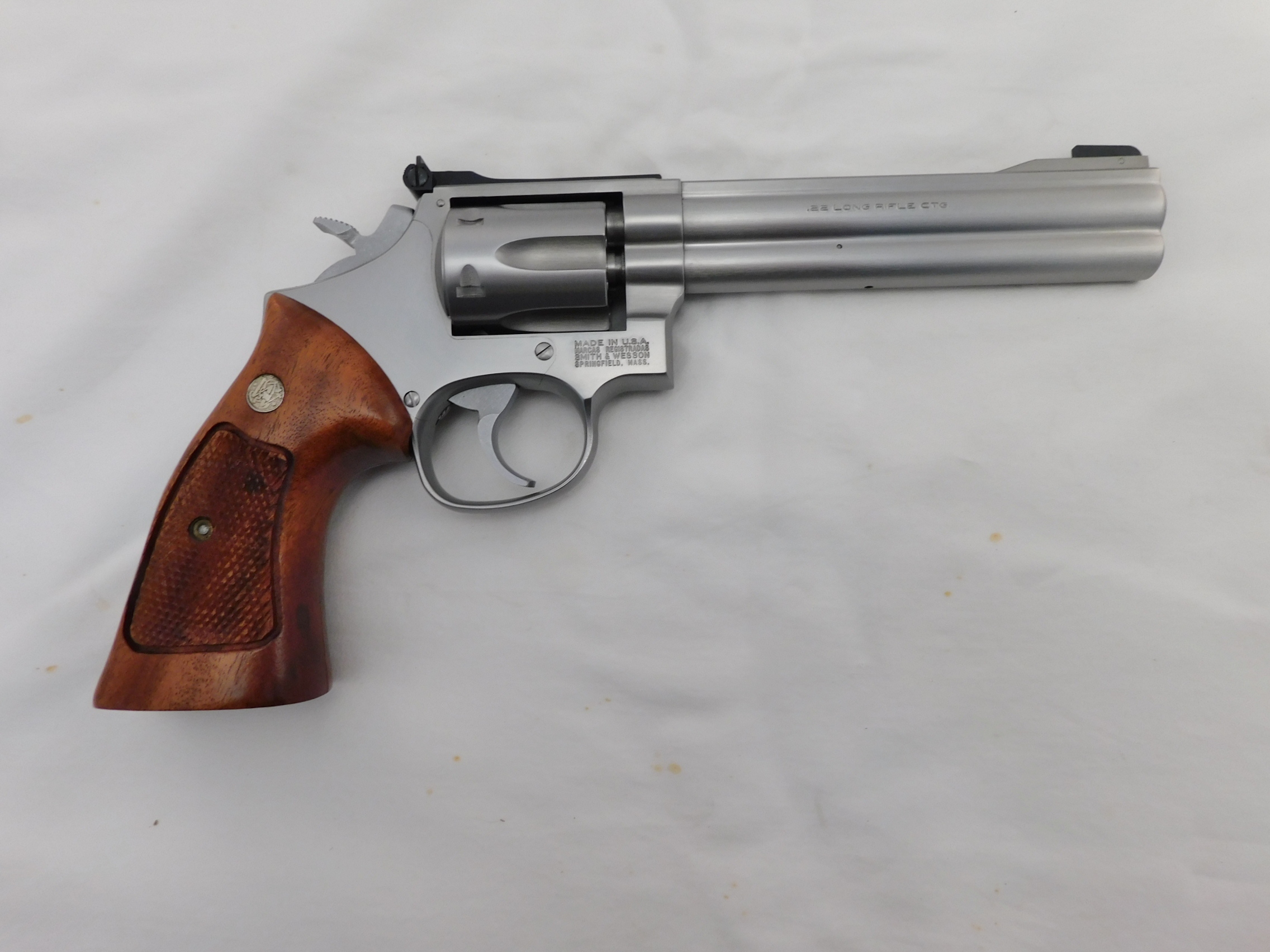 This is a Smith Wesson 617 22 with a 6 inch barrel. This gun is 99% with no box. Serial # is BHB27xx. Buyer pays 35.00 shipping. Thank you. 60-7-6