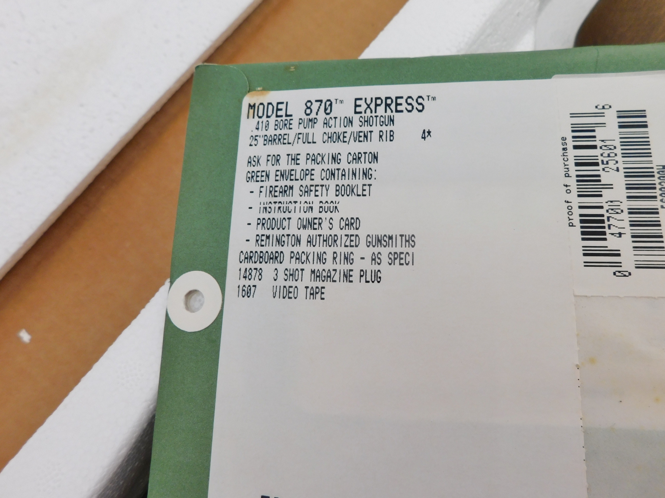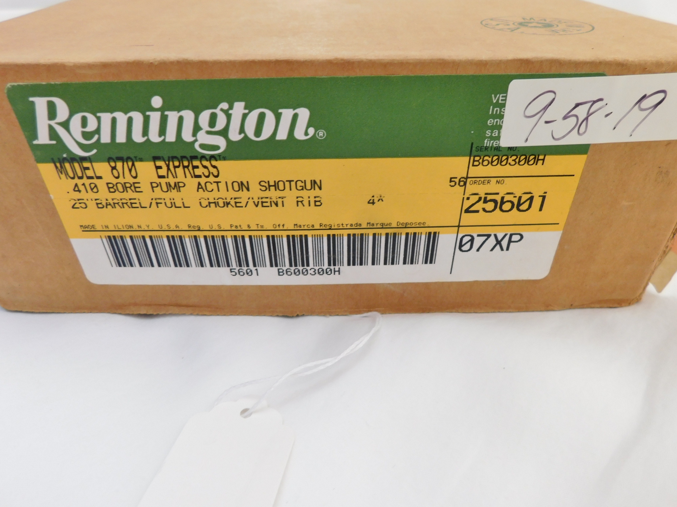 This is a Remington 870 410 with a 25 inch full choke barrel. 3 inch chambers. This gun is 100% new in the box. Barrel code is XP. Buyer pays 60.00 shipping. Thank you. 60-11-2