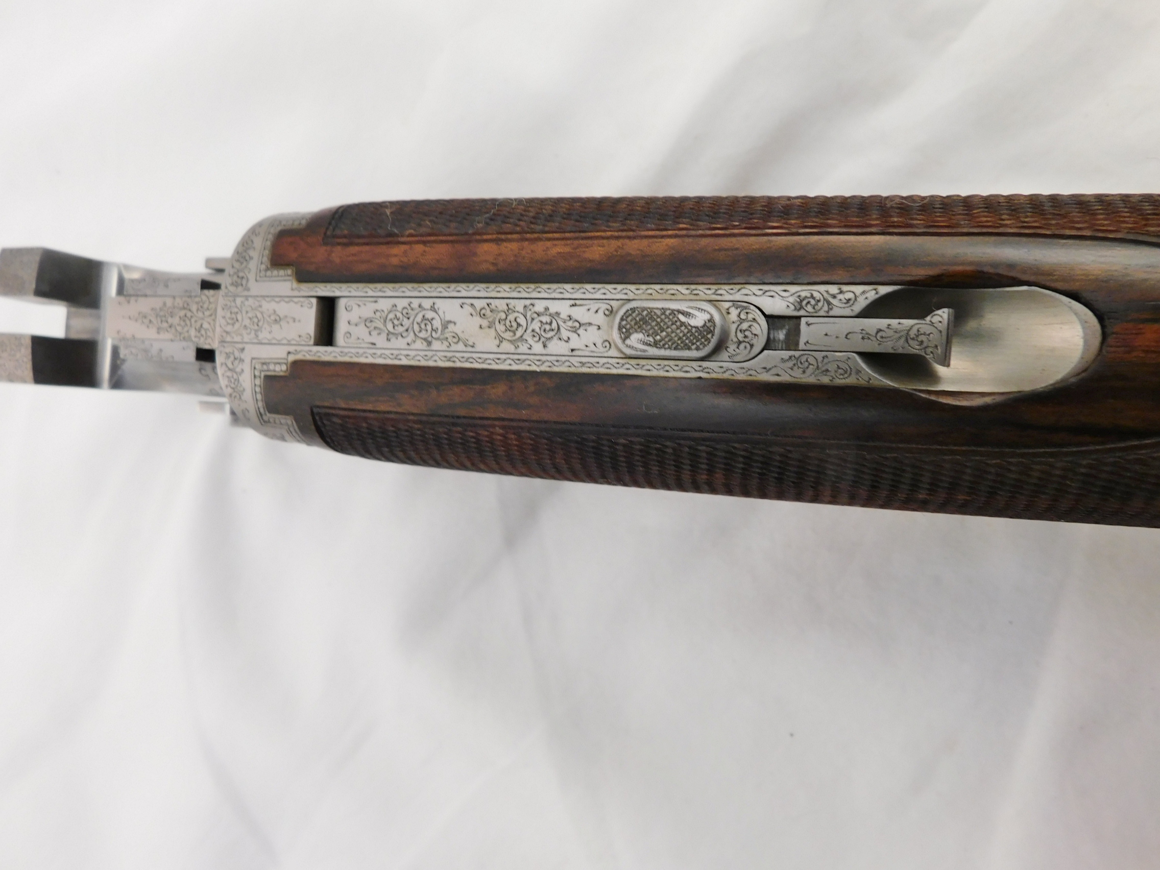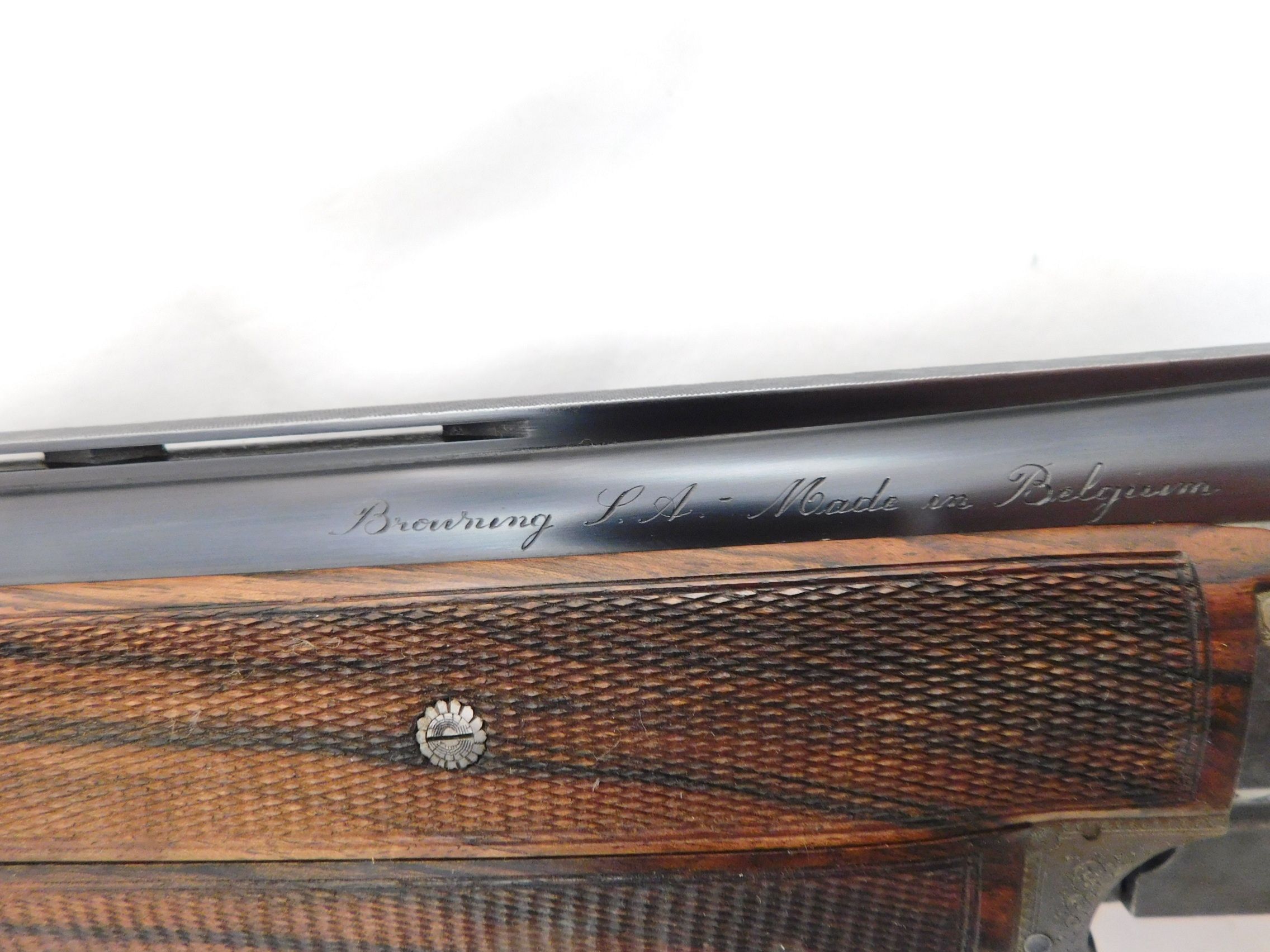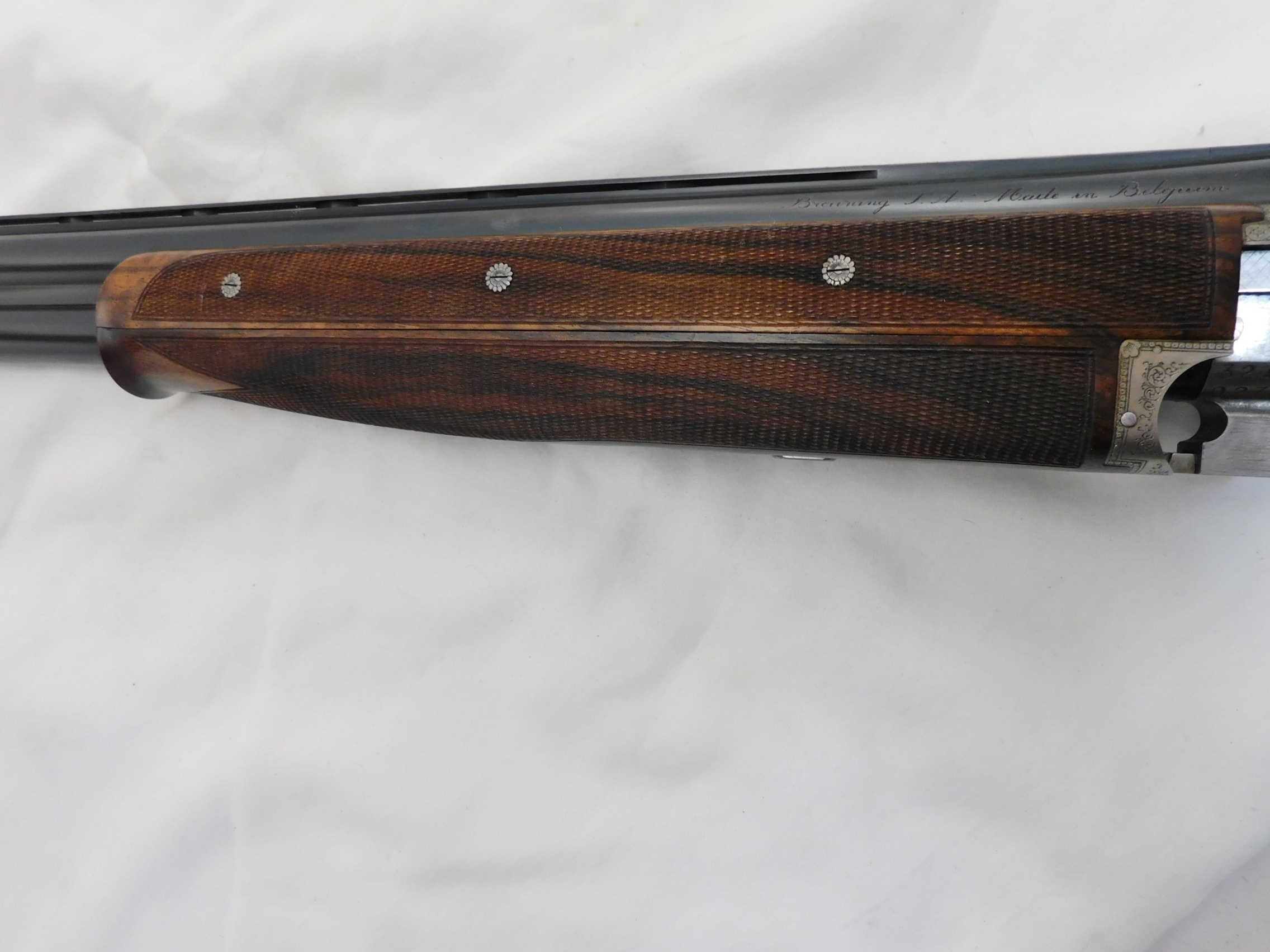 This is a Browning Superposed 20 gauge with 28 inch improved cylinder and modified choke barrels. This gun is 99%+ in the case. Options are oil finish, checkered butt, checkered trigger, 3 piece forearm, scalloped frame and hand filed rib. Signed by C Baerten. Serial # is 324NP02xxx. Buyer pays 100.00 shipping. Thank you. 60-5-13