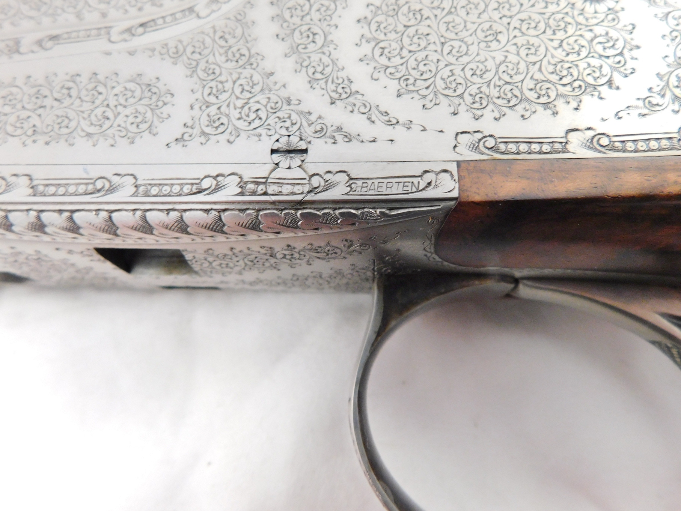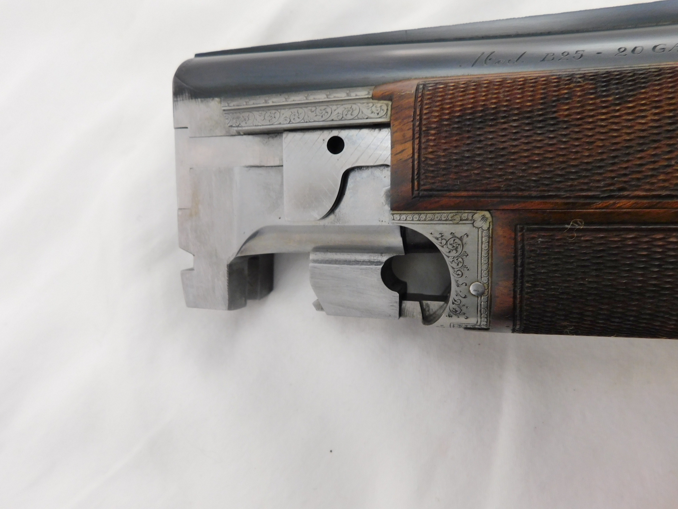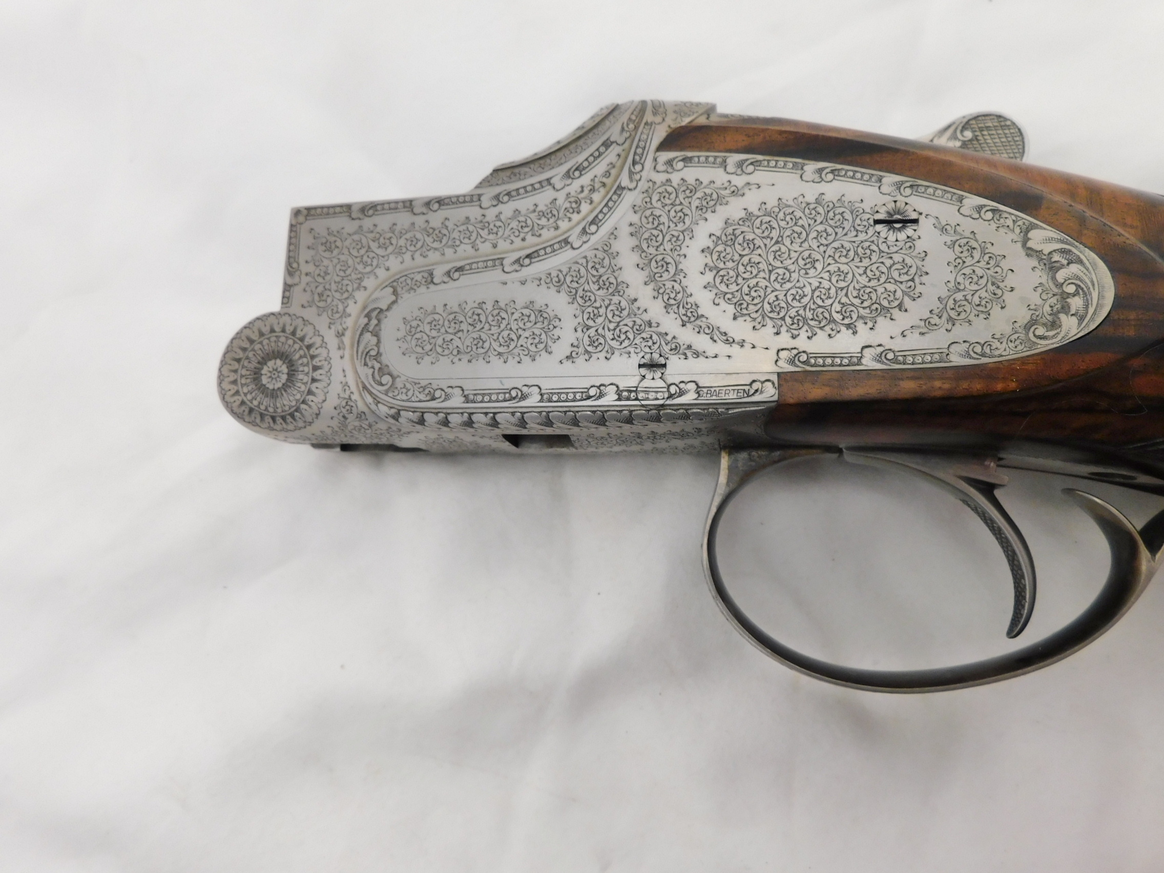 This is a Browning Superposed 20 gauge with 28 inch improved cylinder and modified choke barrels. This gun is 99%+ in the case. Options are oil finish, checkered butt, checkered trigger, 3 piece forearm, scalloped frame and hand filed rib. Signed by C Baerten. Serial # is 324NP02xxx. Buyer pays 100.00 shipping. Thank you. 60-5-13